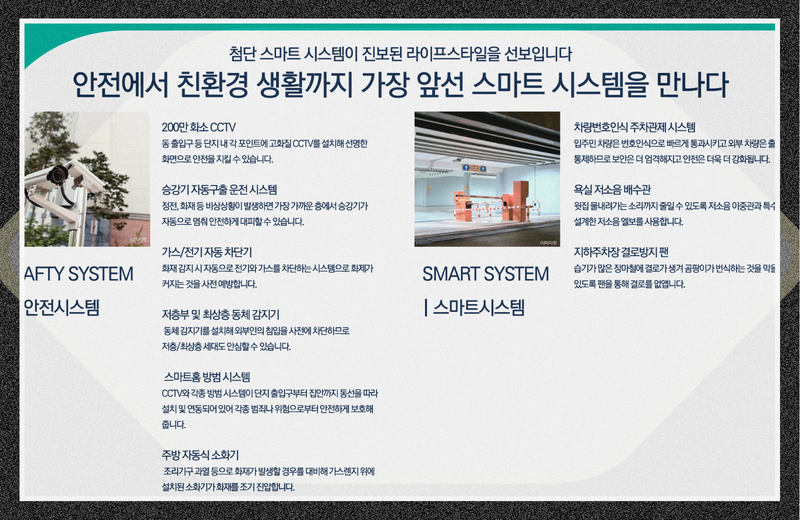 또한, 스마트 홈 시스템이 적용되어 200만 화소 CCTV, 가스·전기 자동 차단 시스템, 차량번호 인식 주차 시스템 등이 설치될 예정으로, 안전하고 편리한 주거 환경이 조성됩니다.